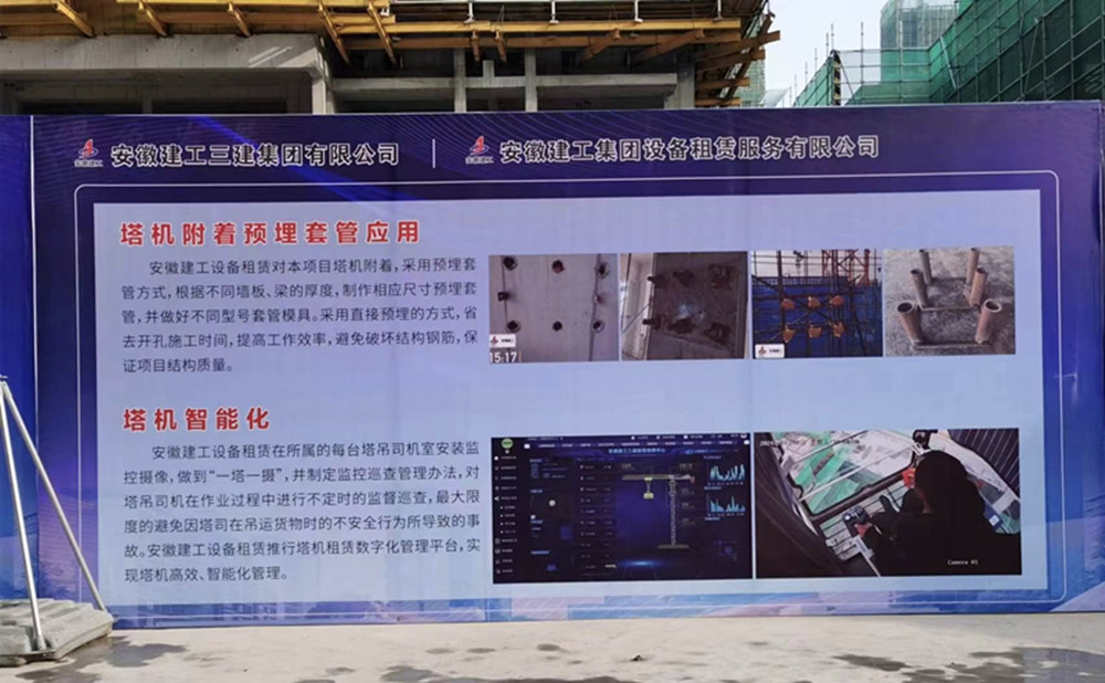 三公司對本項(xiàng)目塔機(jī)附著,采用預(yù)埋套管方式,避免破壞結(jié)構(gòu)鋼筋,保證項(xiàng)目結(jié)構(gòu)質(zhì)量。推行塔機(jī)租賃數(shù)字化管理平臺,實(shí)現(xiàn)塔機(jī)智能化管理,做到“一塔一攝”,并制定監(jiān)控巡查管理辦法,最大限度的避免因塔司在吊運(yùn)貨物時的不安全行為所導(dǎo)致的事故。分公司根據(jù)項(xiàng)目不同施工階段、各階段作業(yè)特點(diǎn)、新業(yè)態(tài)吊裝規(guī)范等內(nèi)容,在項(xiàng)目部開展大型設(shè)備操作人員安全教育,并聯(lián)合項(xiàng)目部開展建筑起重吊裝技能競賽,進(jìn)一步提升特種作業(yè)人員操作技能。