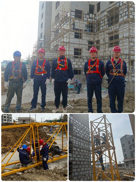 為保質保量按時完成項目生產進度,面對工期緊、任務重,4月11日上午,順安公司6名管理人員左澤潤、劉長松、劉慢慢、朱旭、年曉東、丁銳組成了一支突擊隊,深入蚌埠秦集安置房項目,用三個多小時,安全、高效完成了最后一臺塔吊拆除任務。