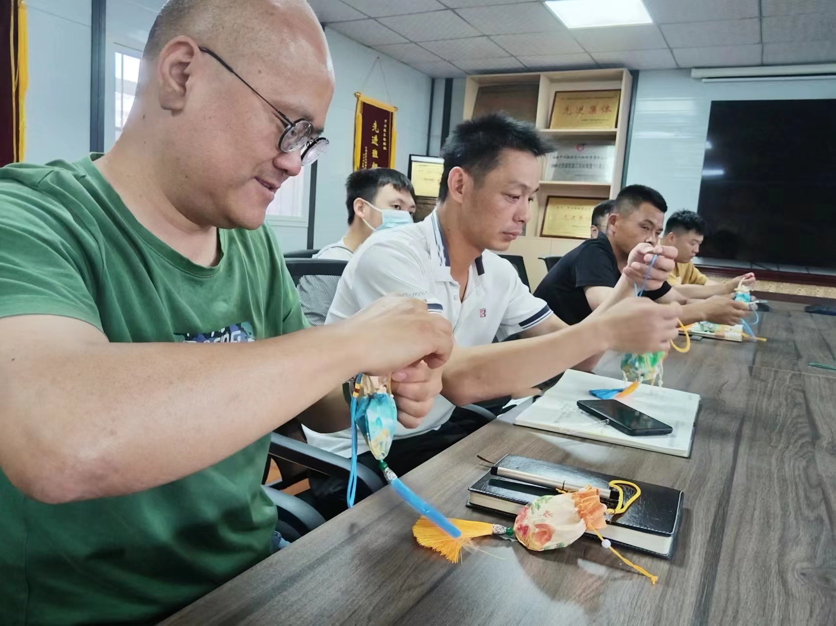 中興聯(lián)分公司組織開(kāi)展了以“端午安康,幸福飄香”為主題的香囊制作活動(dòng)。桌上彩繩、針線、掛飾、香料包配件等材料一應(yīng)俱全,接下來(lái)大家開(kāi)始學(xué)習(xí)制作香囊,有的現(xiàn)學(xué)現(xiàn)做,有的發(fā)揮創(chuàng)意各顯其能。