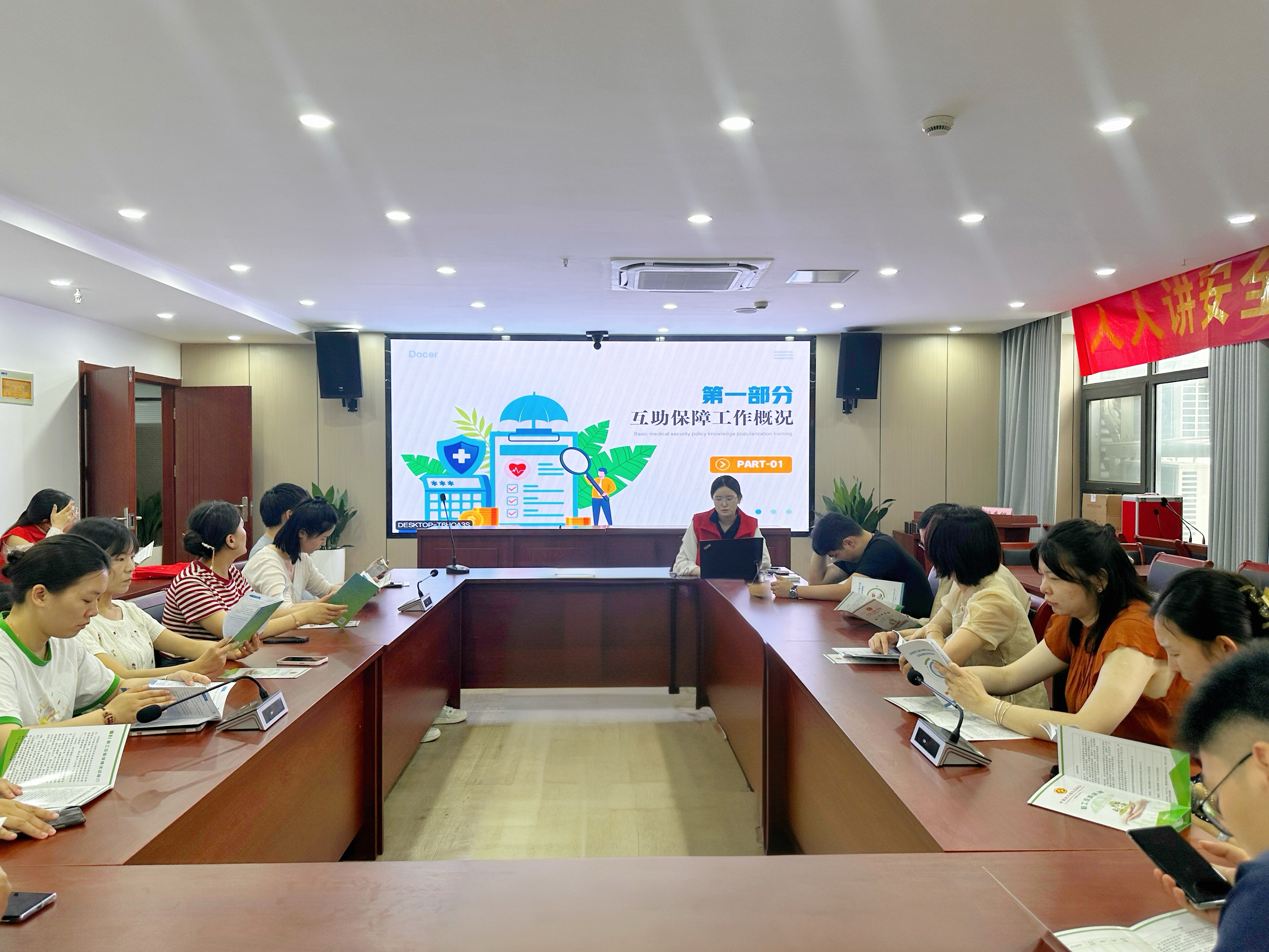 公司工會(huì)與團(tuán)總支在機(jī)關(guān)會(huì)議室講解互助保障活動(dòng)情內(nèi)容,解答職工相關(guān)疑問(wèn)