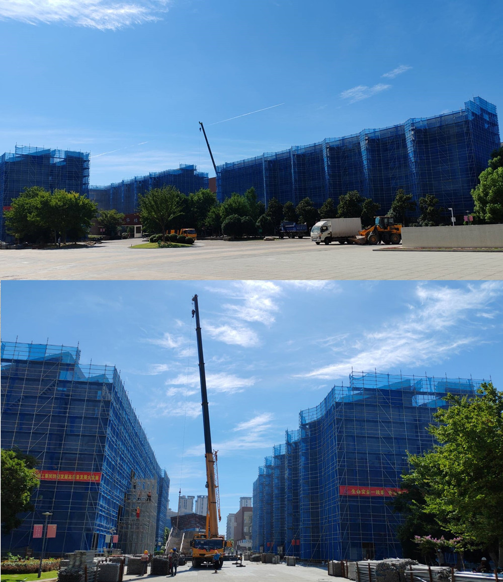 廣建架業(yè)公司針對第十中學校園改造項目,制定了科學嚴密的施工方案,經(jīng)過200余工人和5名管理人員歷時5天順利完成6.5萬平方米鍍鋅盤扣外架搭設(shè)任務(wù),比計劃工期提前了2天,為外立面修復(fù)爭取到了更多的時間。廣建架業(yè)公司全體人員戰(zhàn)酷暑、搶進度,用高質(zhì)量的服務(wù)水平獲得了總包單位的肯定。