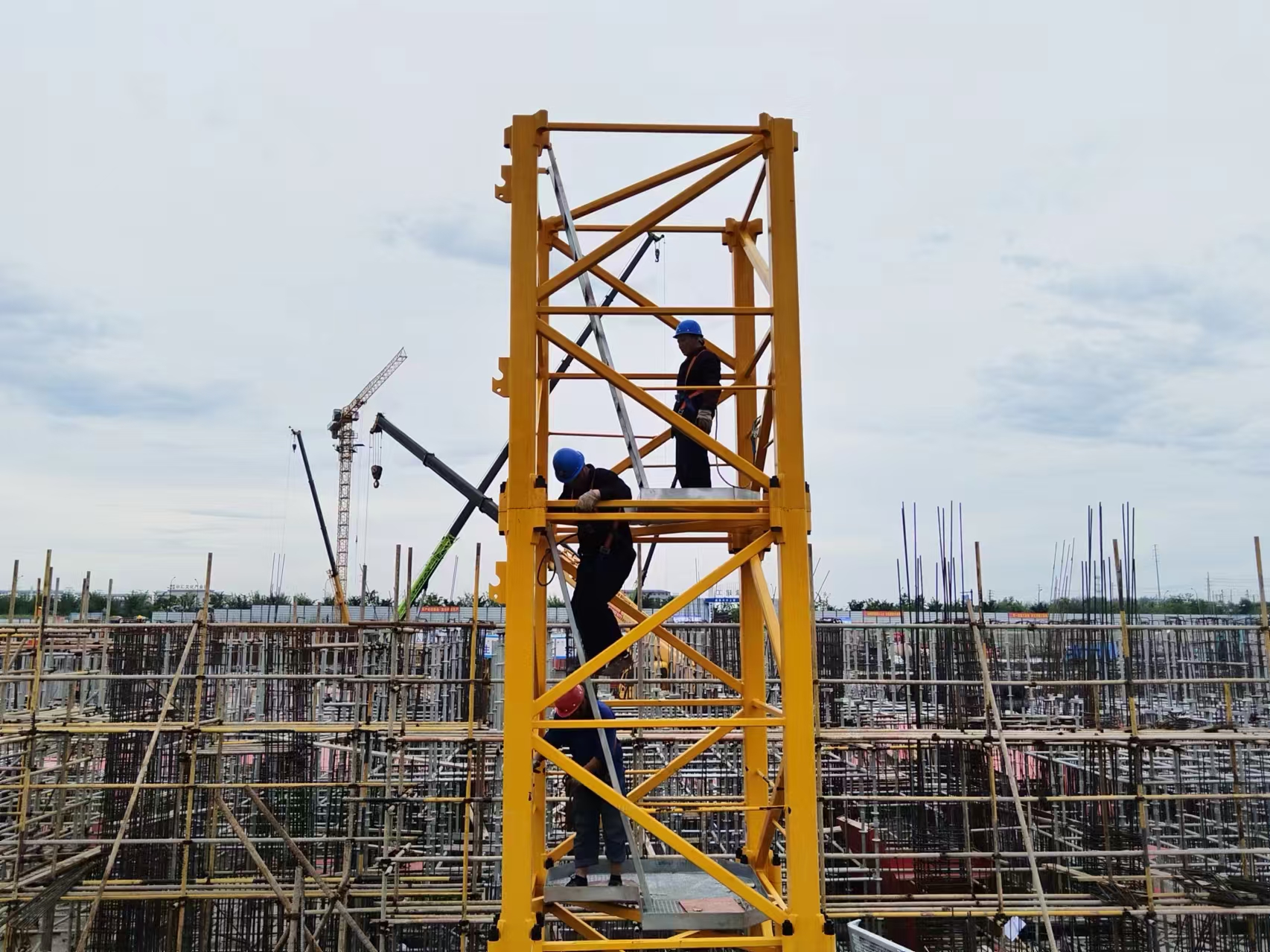 安裝班組卯足干勁,與時間賽跑、與高溫對抗,各小組充分發(fā)揮職能,持續(xù)提升“專業(yè)化、標準化、精細化”能力和水平,以“干”字當(dāng)頭,“實”字為先,堅定信心,以沖鋒姿態(tài)奏響專題勞動競賽最強音。最終,王楊班組率先完成了任務(wù),獲得了勝利。勞動競賽僅七天的時間,經(jīng)參賽班組努力順利完成了八臺塔式起重機的安裝任務(wù),贏了的項目方的肯定。