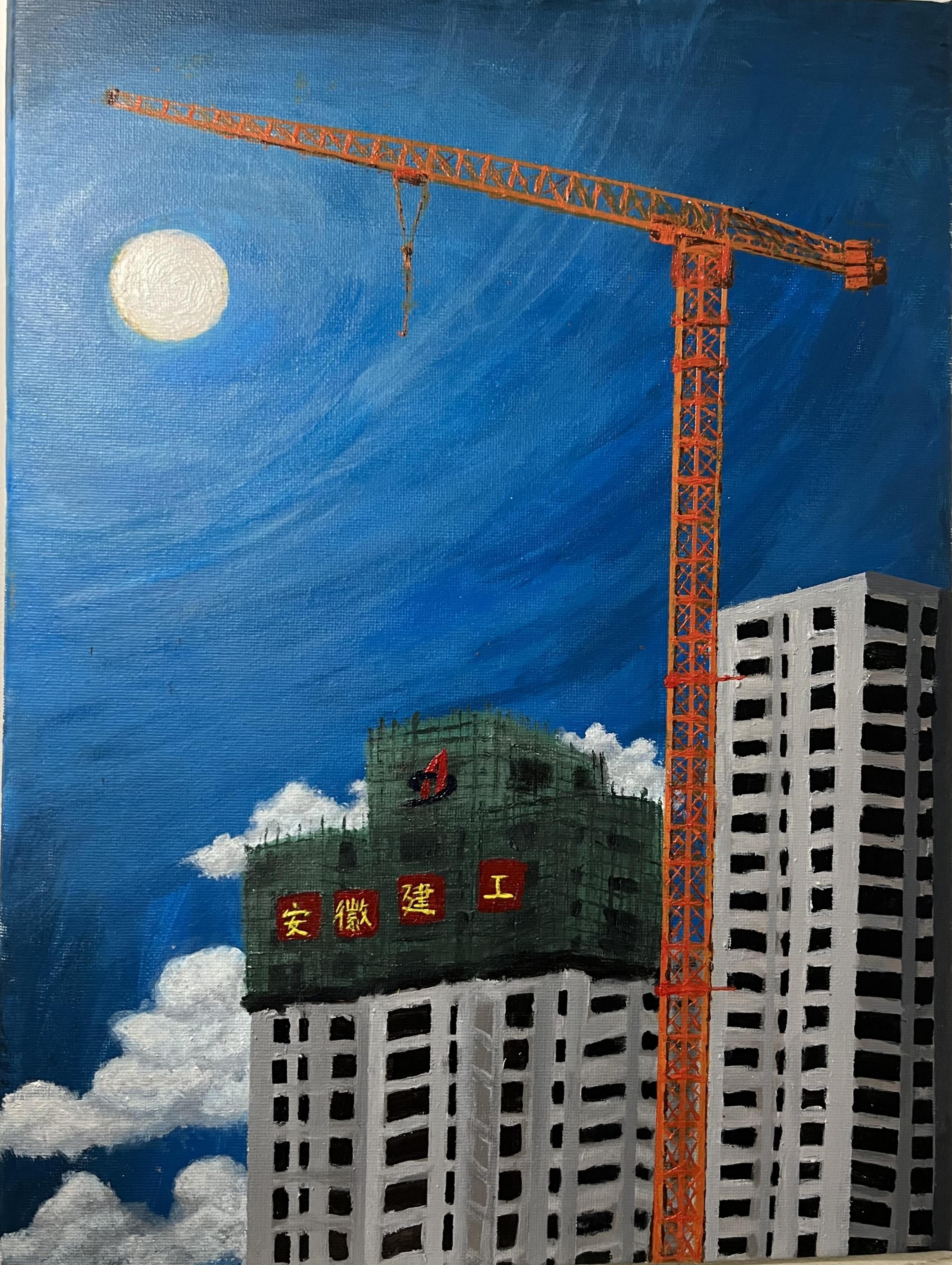 機(jī)關(guān)-秦怡-書畫-月下塔機(jī)