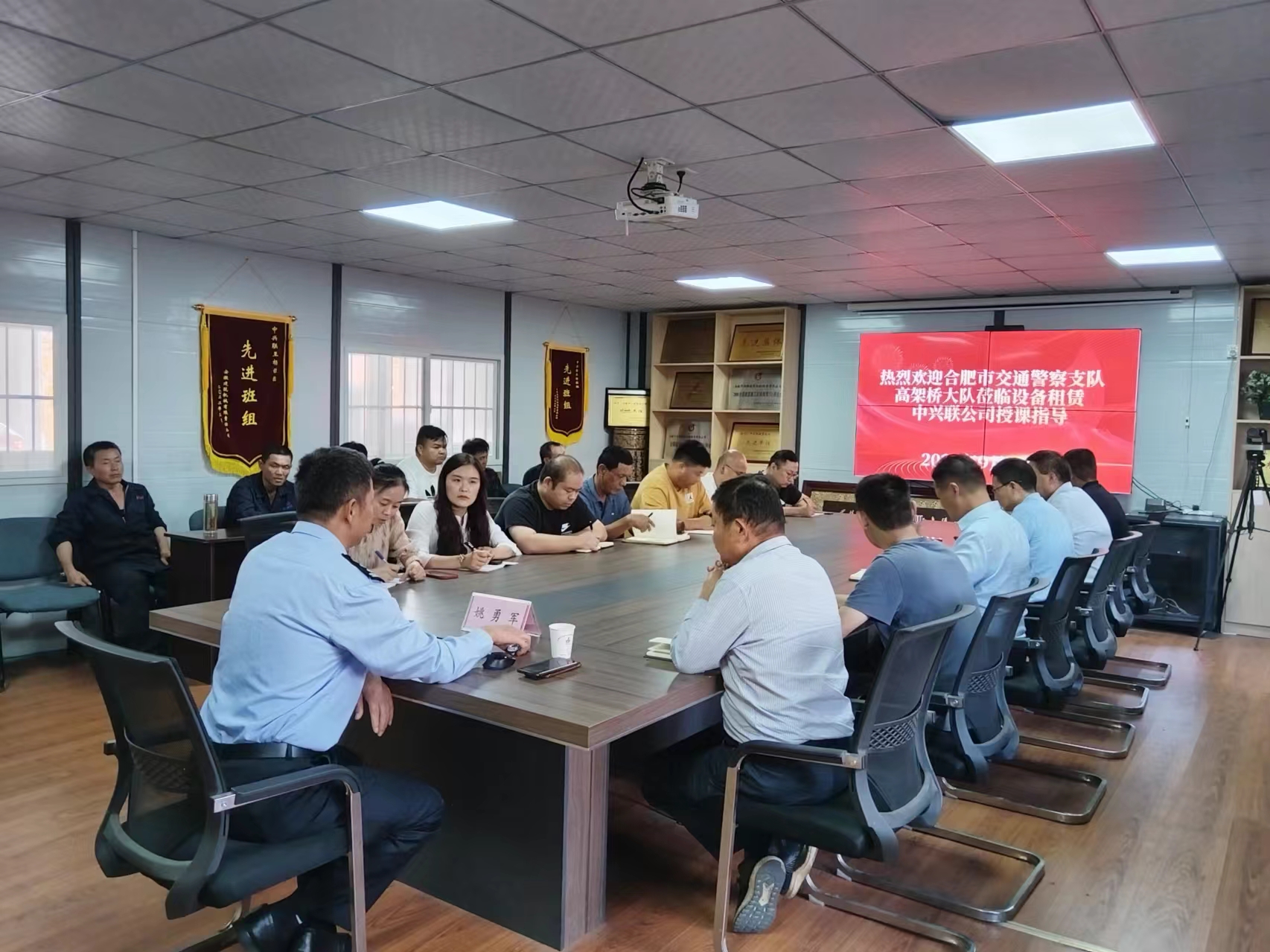 2024 年 9 月 27 日,合肥市公安局交通警察支隊高架橋大隊與建工設(shè)備租賃中興聯(lián)公司精心聯(lián)合組織了一場全面且深入的交通法規(guī)培訓(xùn)活動。該活動在中興聯(lián)公司會議室舉行,旨在提升公司員工的交通法規(guī)意識,為企業(yè)安全生產(chǎn)及員工出行安全保駕護(hù)航。