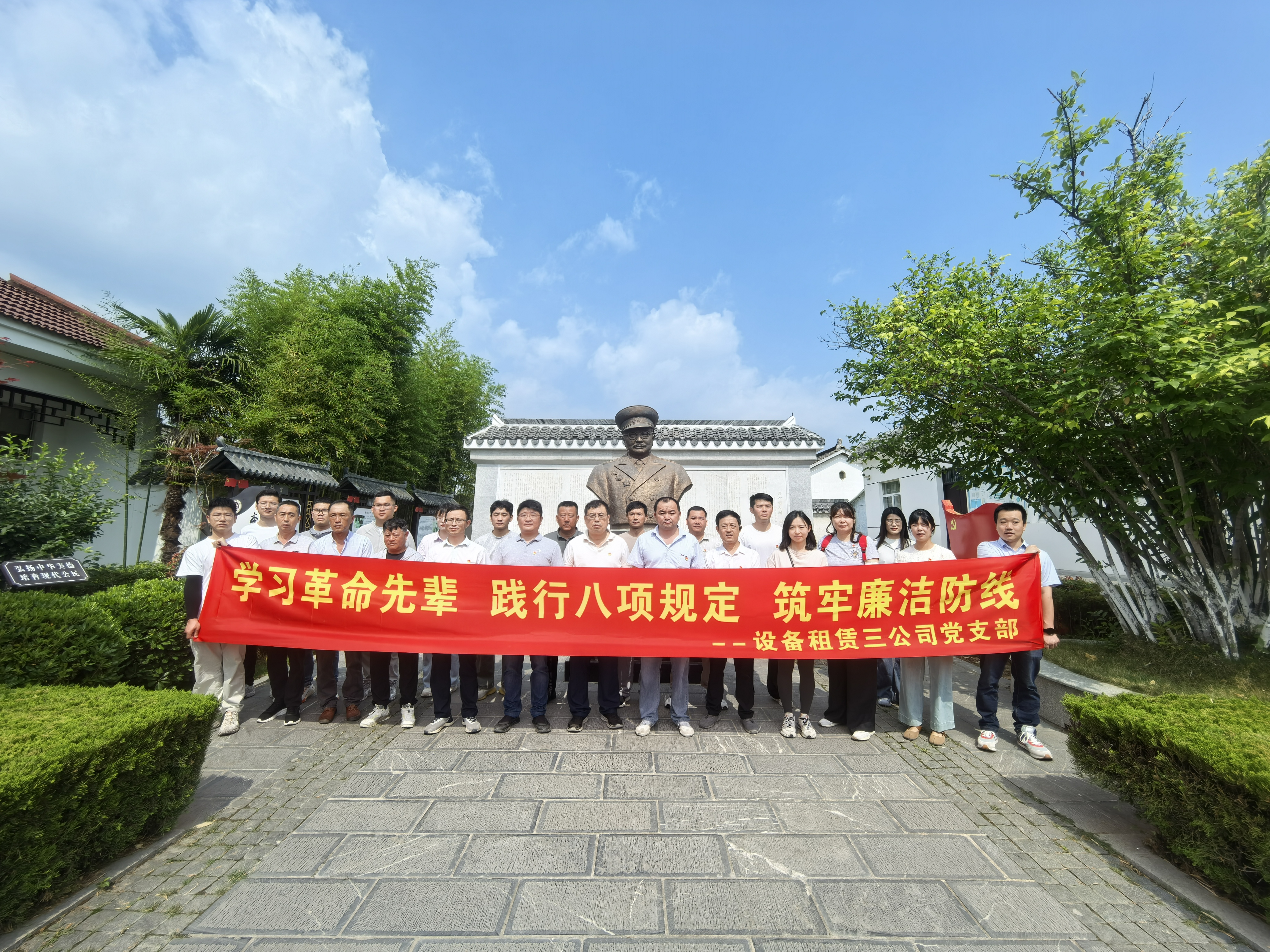 5月21日,設(shè)備租賃三公司黨支部組織黨員、積極分子前往李克農(nóng)將軍故居,開展了以“學(xué)習(xí)革命先輩,踐行八項(xiàng)規(guī)定,筑牢廉潔防線”為主題的學(xué)習(xí)活動(dòng),旨在通過緬懷革命先輩的光輝事跡,強(qiáng)化黨員干部的廉潔自律意識(shí)。