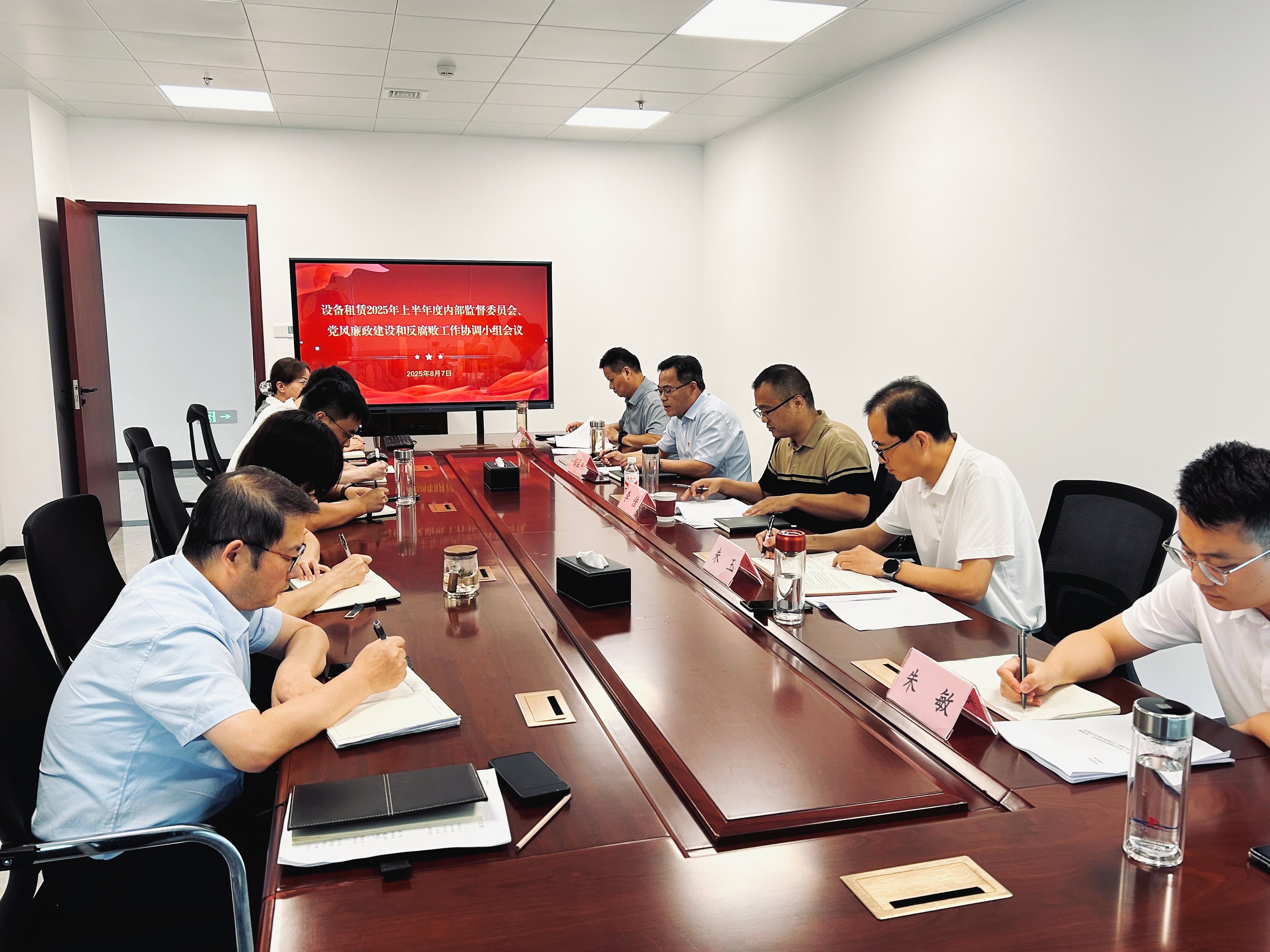 8月7日下午,建工設備租賃召開2025年上半年度內(nèi)部監(jiān)督委員會、黨風廉政建設和反腐敗工作協(xié)調(diào)小組會議,公司黨委委員、副總經(jīng)理程國祥主持會議,集團紀委派駐第一紀檢組副組長李佳列席會議。