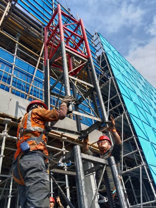 當(dāng)前,三公司勞動競賽正如火如荼推進(jìn),四季度攻堅沖刺已進(jìn)入決戰(zhàn)關(guān)鍵階段。近日,在卓越城項目施工現(xiàn)場,三公司吳金國安拆班組秉持“搶進(jìn)度不松安全、保質(zhì)量不降標(biāo)準(zhǔn)”的理念,圓滿完成6號樓封頂階段的設(shè)備安拆保障任務(wù),不僅為封頂作業(yè)安全平穩(wěn)推進(jìn)提供了關(guān)鍵支撐,更有力助推項目順利達(dá)成階段性建設(shè)目標(biāo)。